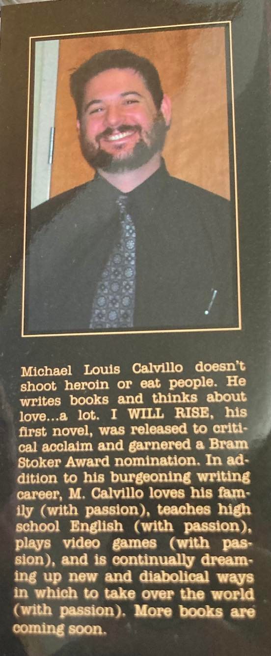 Mike was a good friend of mine, and the lead vocalist for the first band I was ever in. He was smart, funny, weird, and incredibly creative. As friends sometimes do, we drifted apart after the band broke up, but reconnected some years later on social media. To my amazement, just as I was thinking that I should start taking my writing more seriously, I discovered that in the time since I’d spoken to him last, Mike had gotten a job as a high school English teacher—which is commendable and impressive enough in its own right—but he had also been steadily writing (and publishing!) short stories and novels under his full name, Michael Louis Calvillo. When we were in the band and hanging out all the time, he never talked about writing that I can remember. Neither did I, for that matter. We were both in our early 20s, having fun in a band, and had a wealth of other interests. But when I saw the list of books he’d published, I wasn’t all that surprised. He was far too creative a person—he had to have an outlet for all that creativity, and once the writing bug bit him, it bit hard. Unfortunately, Mike passed away in 2012 after a battle with pancreatic cancer. I remember how surprised I was at just how hard his passing hit me. And how hard it still hits me, for that matter, but I digress.